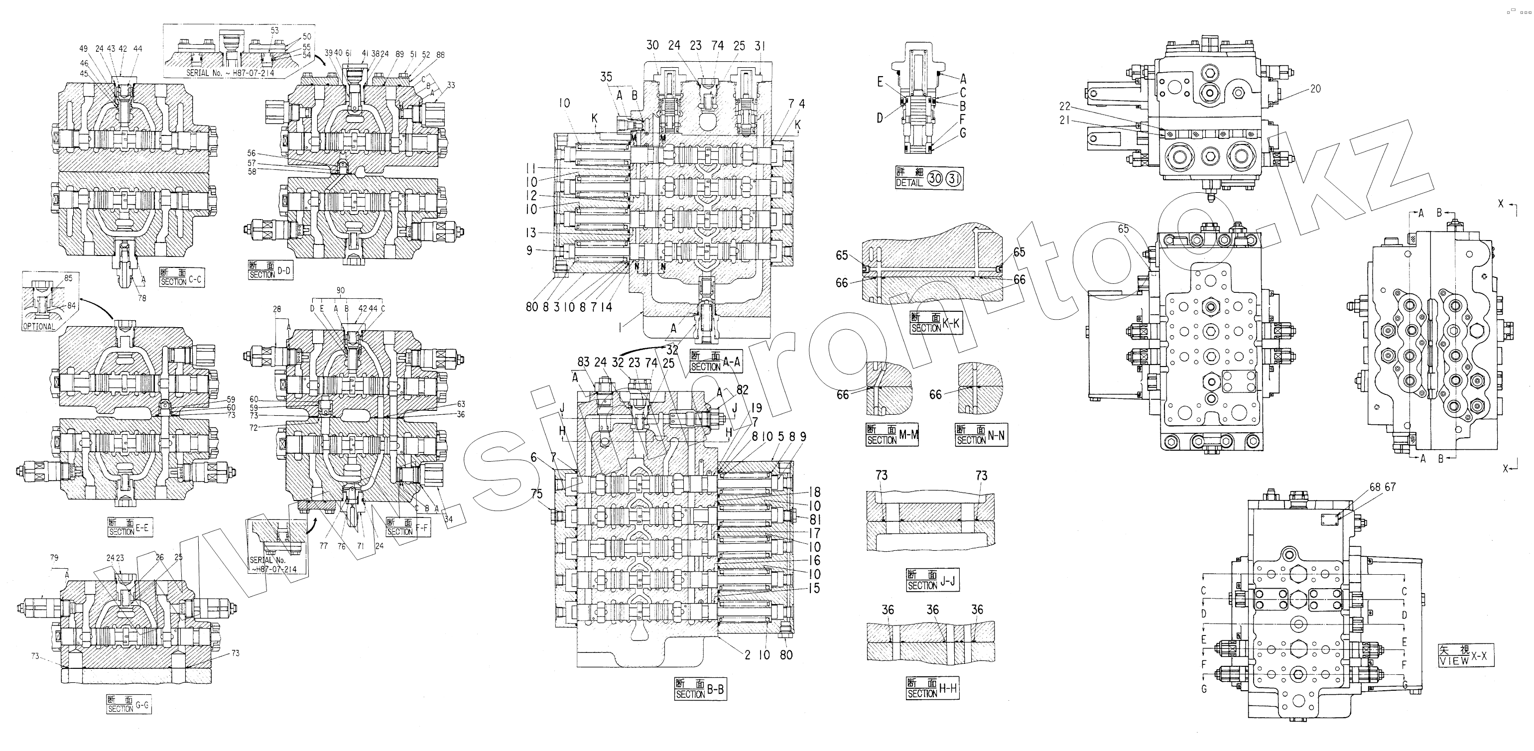 Каталог запасных частей к технике: Hitachi Компоненты EX-200. VALVE, CONTROL