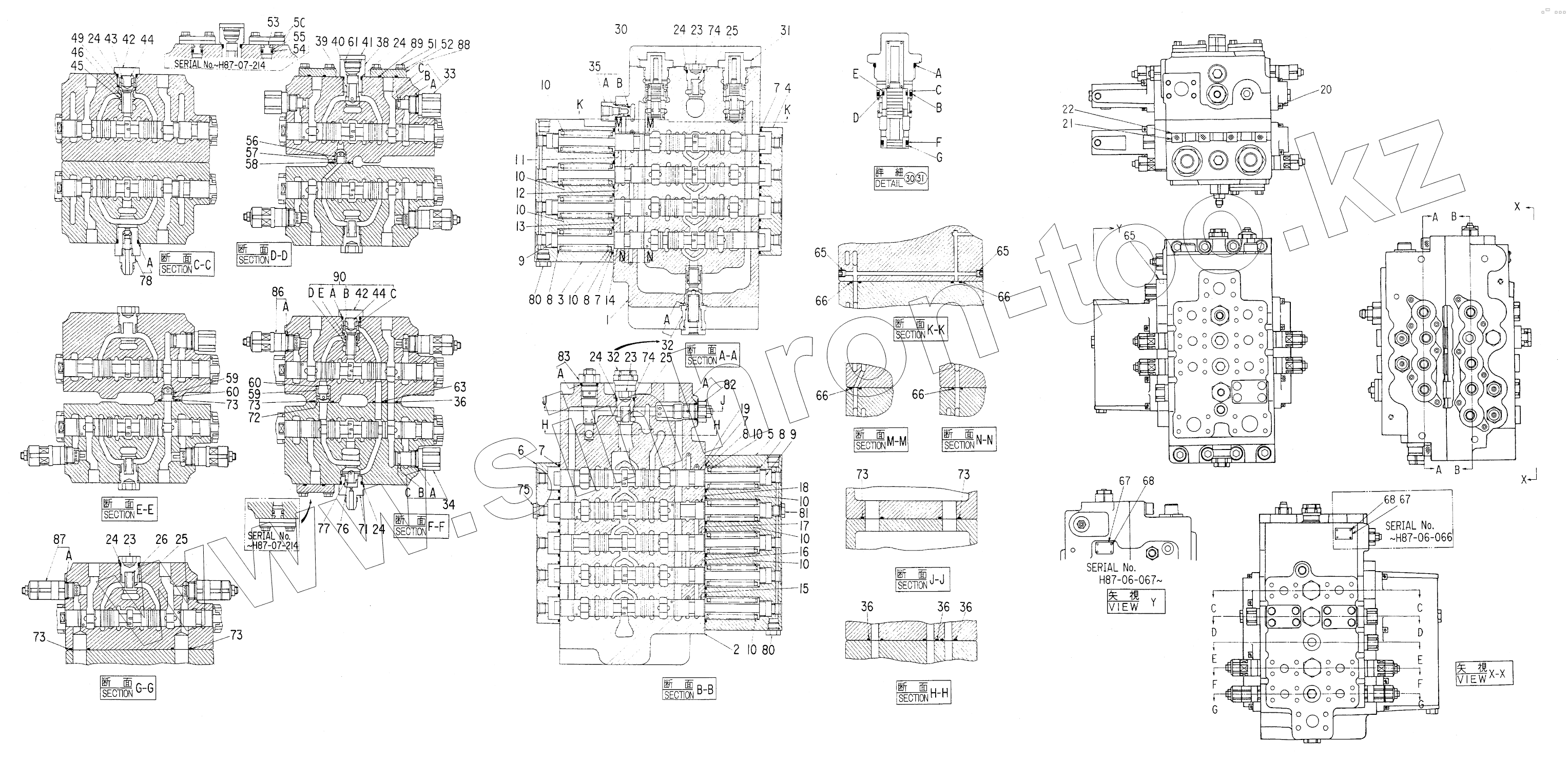 Каталог запасных частей к технике: Hitachi Компоненты EX-200. VALVE, CONTROL