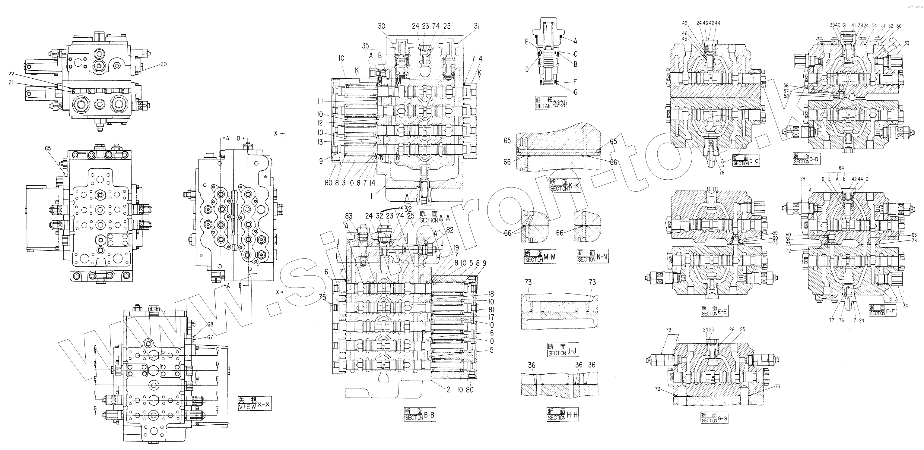 Каталог запасных частей к технике: Hitachi Компоненты EX-200. VALVE, CONTROL