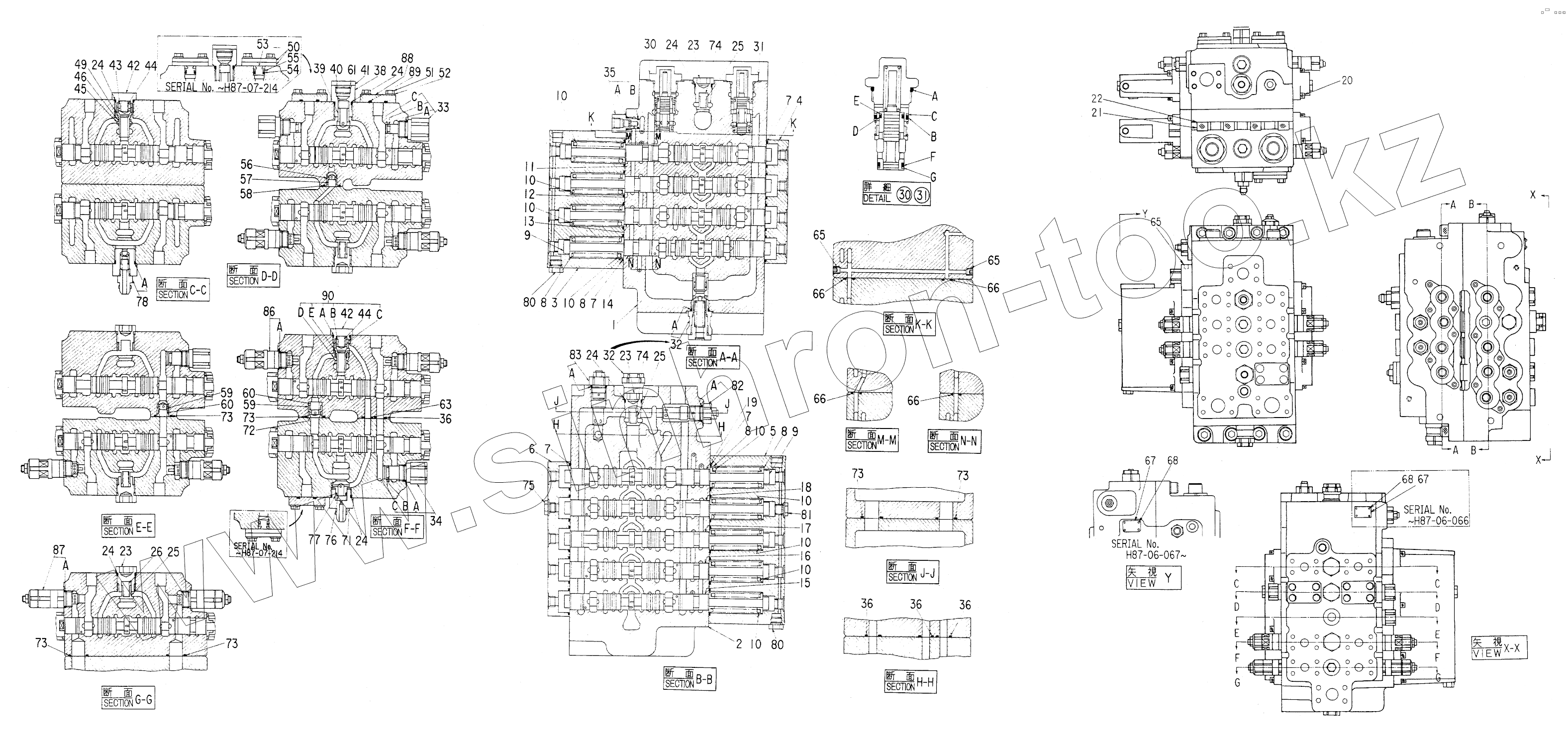 Каталог запасных частей к технике: Hitachi Компоненты EX-200. VALVE, CONTROL