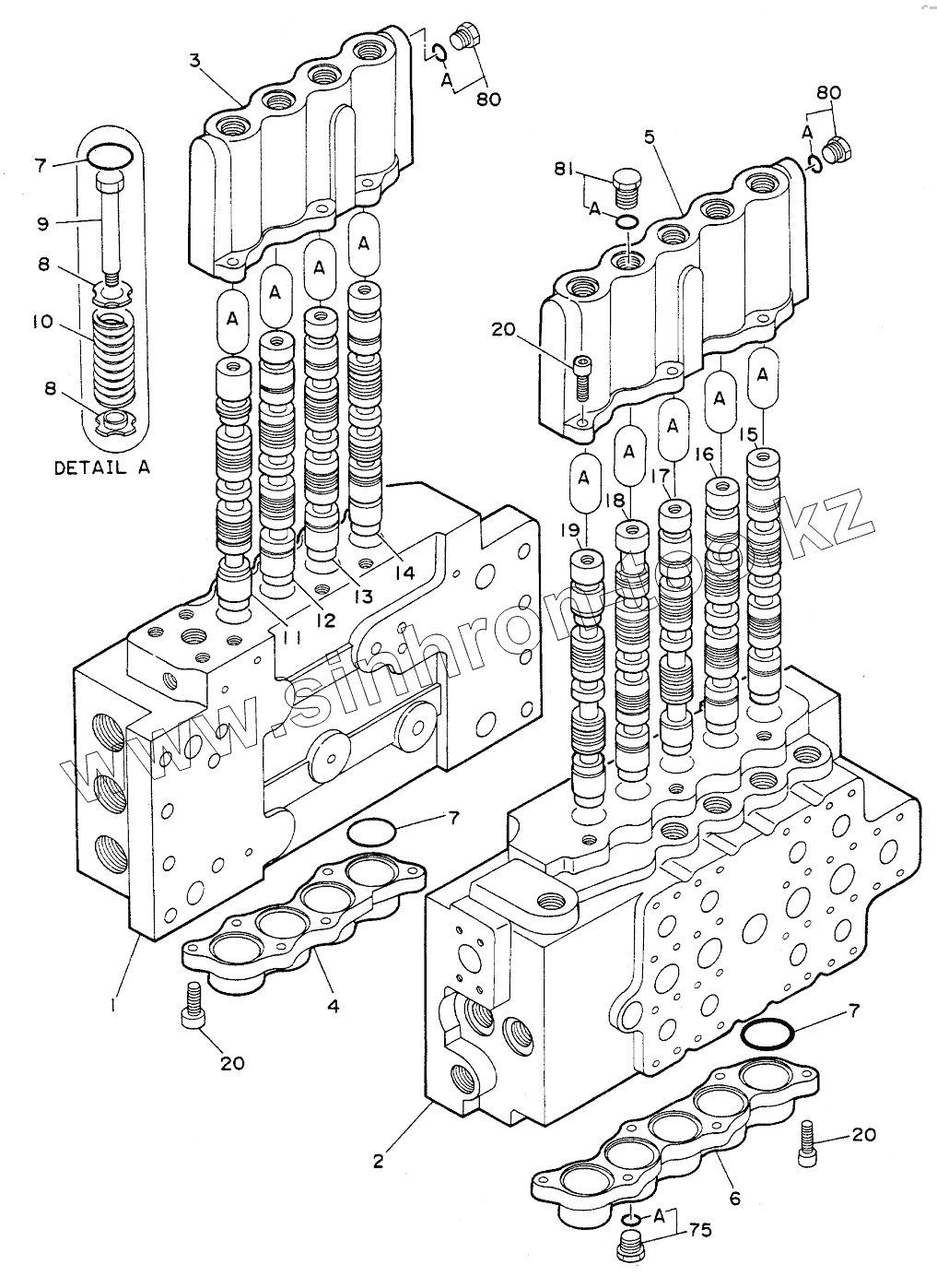 Каталог запасных частей к технике: Hitachi Компоненты EX-200. VALVE, CONTROL (1/4)