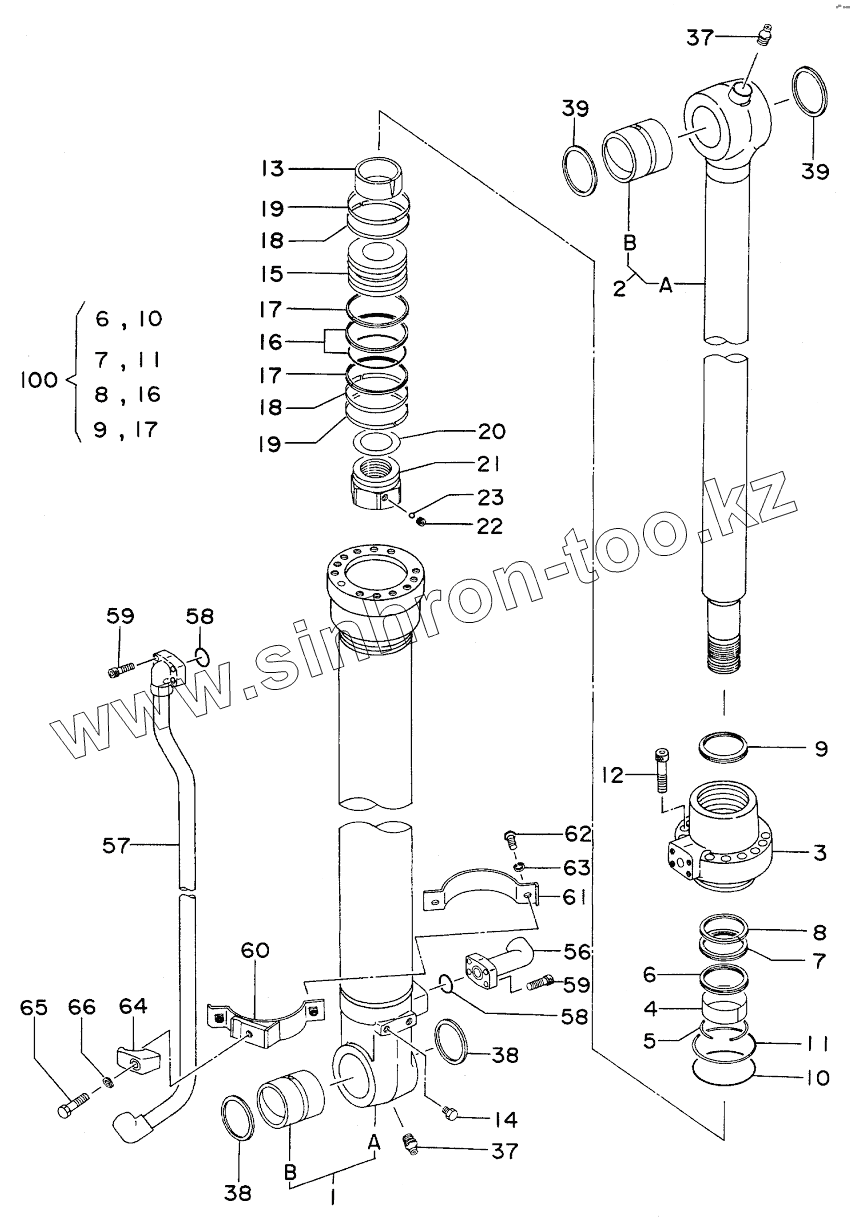 Каталог запасных частей к технике: Hitachi Компоненты EX-200-2. CYL., BUCKET Serial №60001-