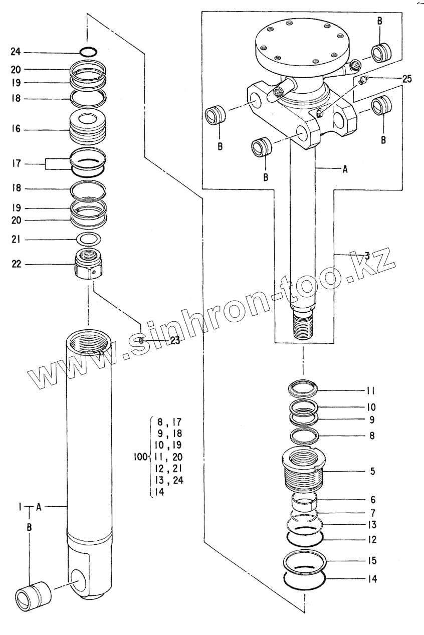 Каталог запасных частей к технике: Hitachi Компоненты EX-200-2. CYL., CLAMSHELL Serial №60001-