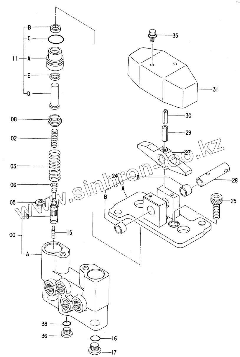 Каталог запасных частей к технике: Hitachi Компоненты EX-200-2. VALVE, PILOT Serial №60001-