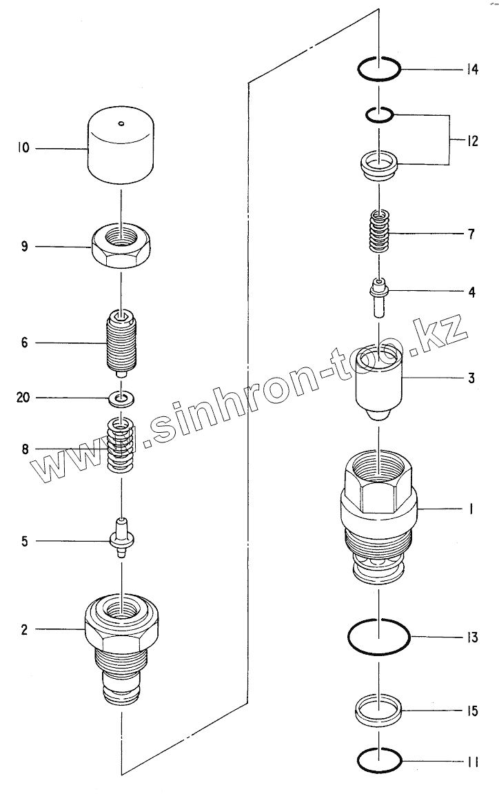Каталог запасных частей к технике: Hitachi Компоненты EX-200-2. VALVE, RELIEF Serial №60001-