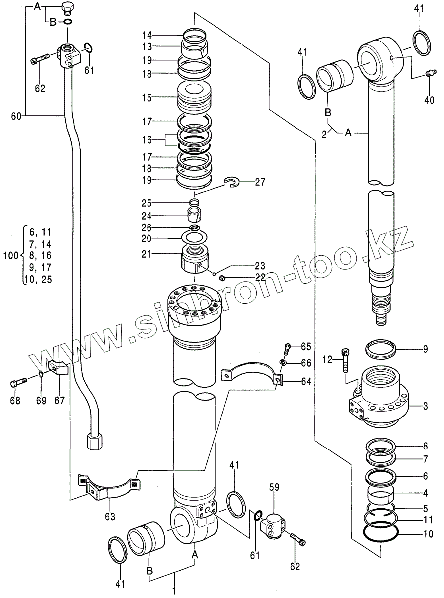Каталог запасных частей к технике: Hitachi Компоненты EX-200-3(LC, H). CYL.:ARM, 0481800A