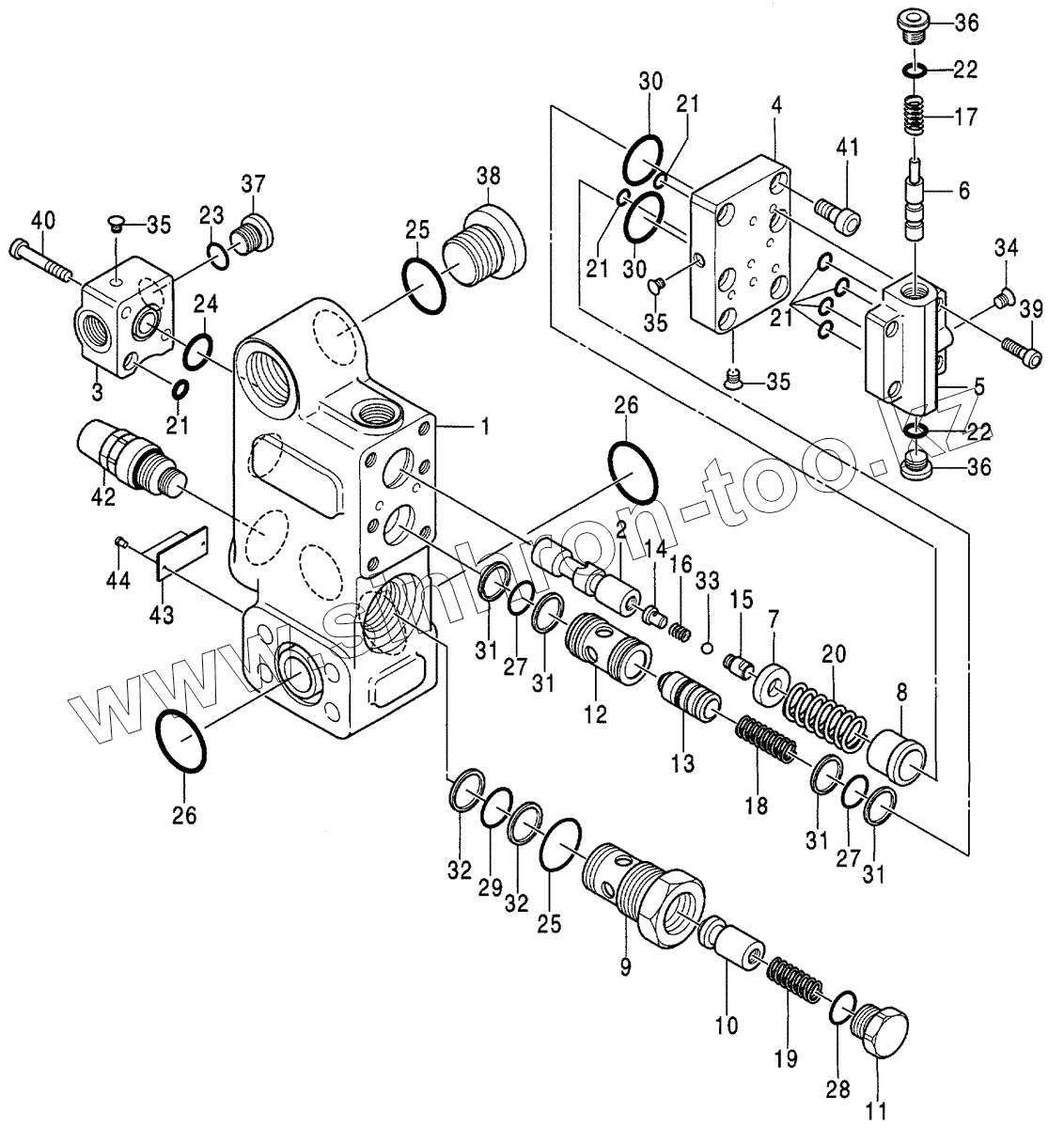 Каталог запасных частей к технике: Hitachi Компоненты EX-200-3(LC, H). VALVE, HOLDING, 0644400