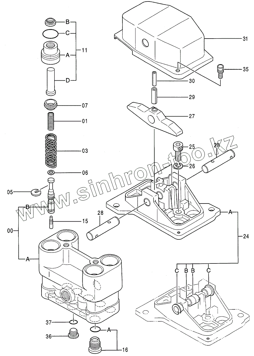 Каталог запасных частей к технике: Hitachi Компоненты EX-200-3(LC, H). VALVE, PILOT, 9101512B