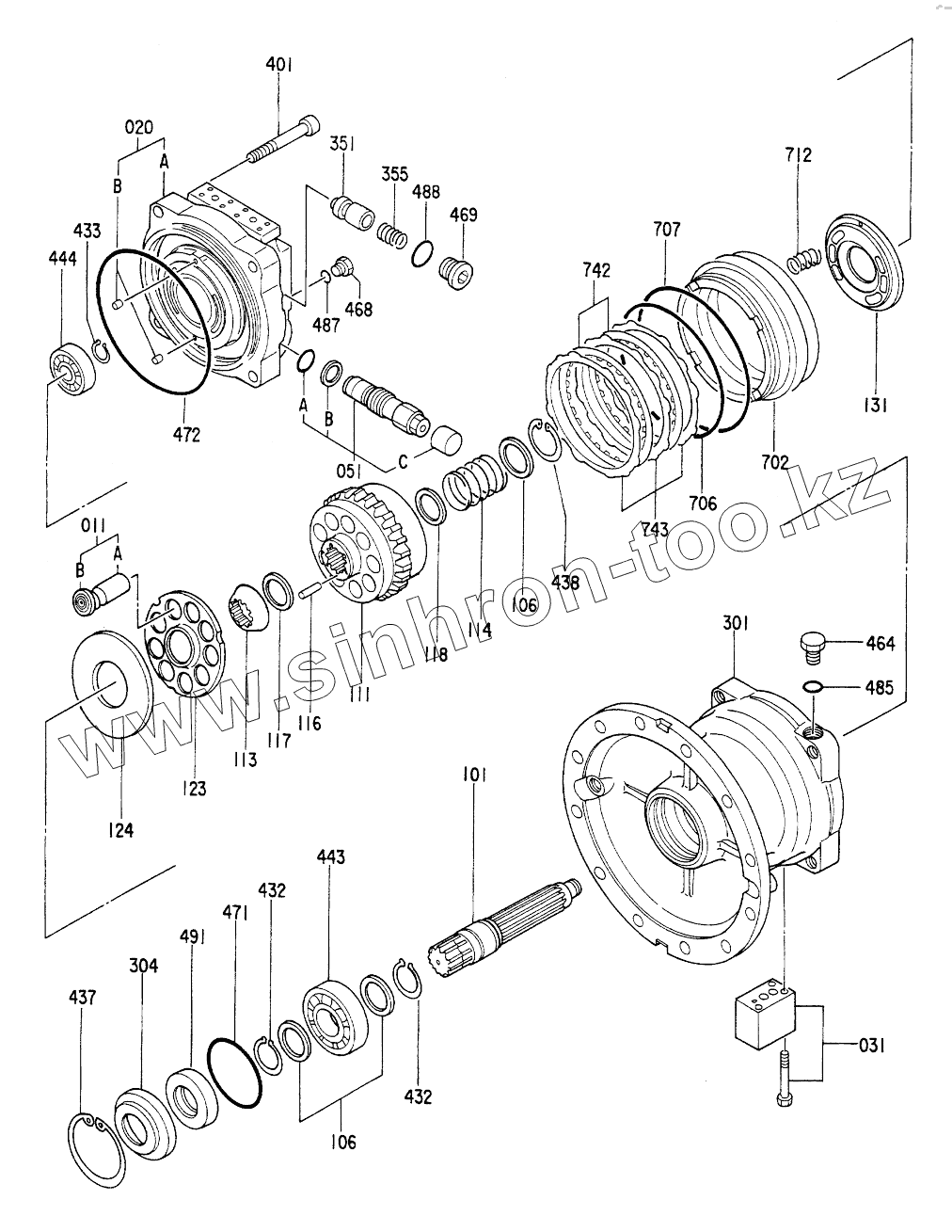 Каталог запасных частей к технике: Hitachi Компоненты EX-220. MOTOR,OIL (SWING)
