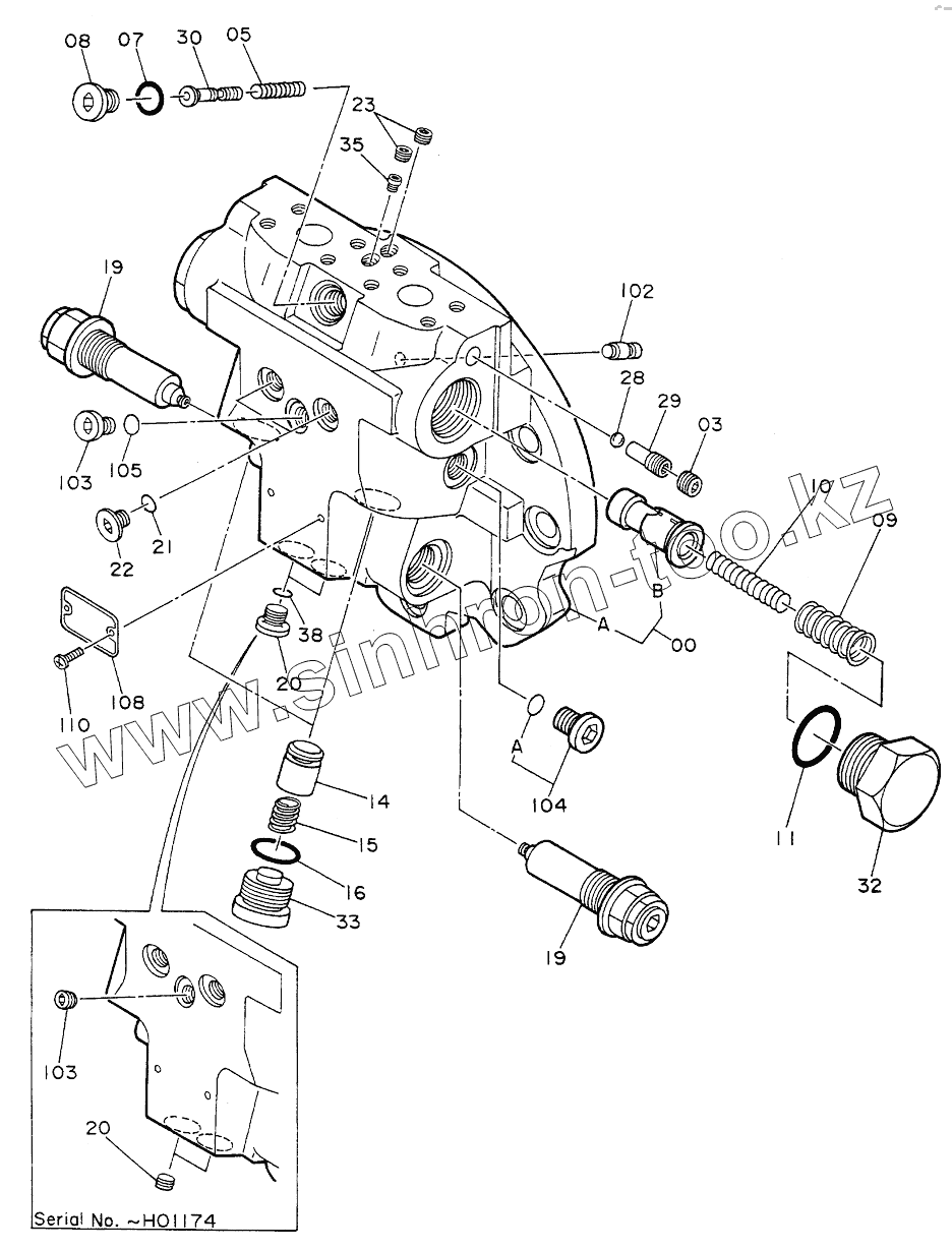 Каталог запасных частей к технике: Hitachi Компоненты EX-220. VALVE,BRAKE