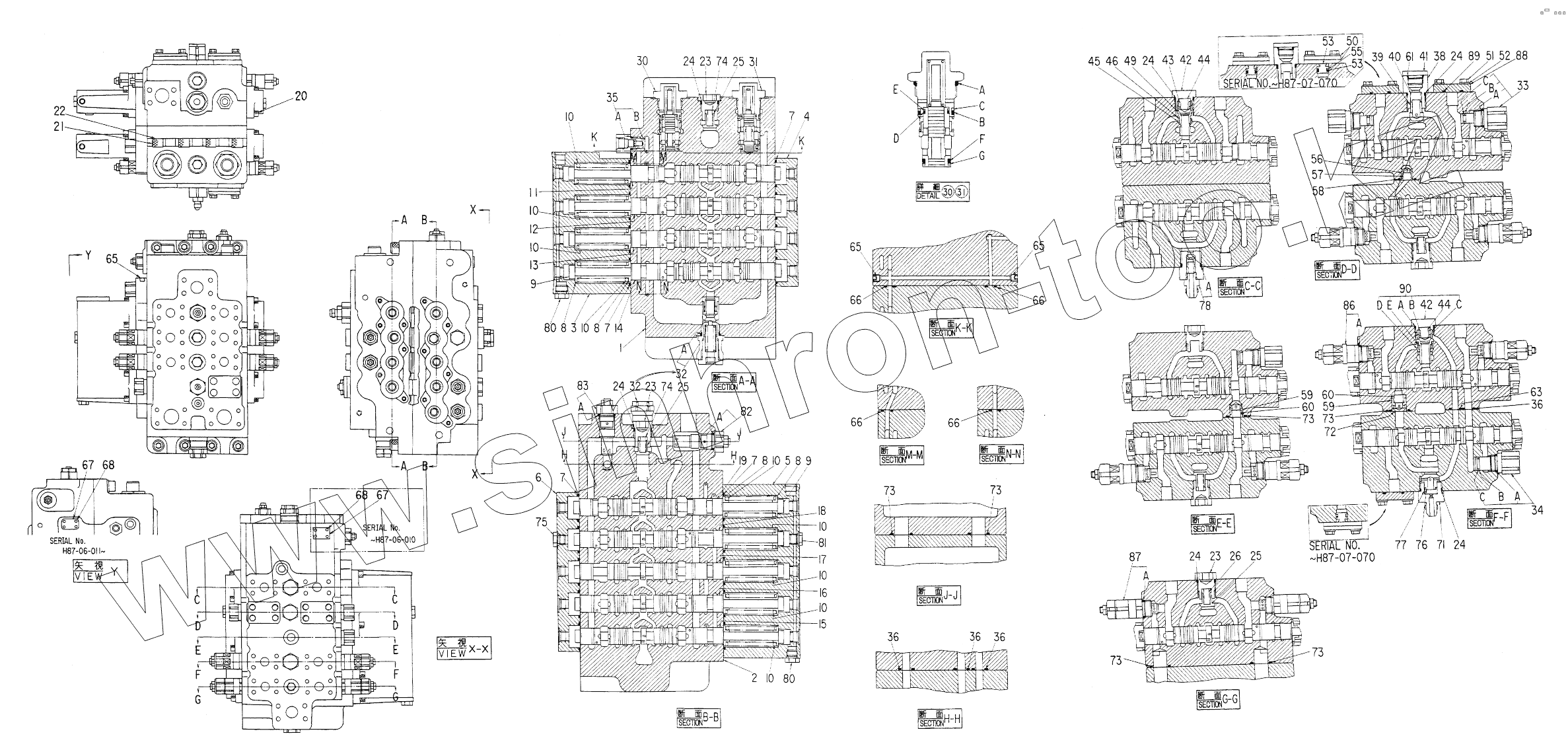 Каталог запасных частей к технике: Hitachi Компоненты EX-220. VALVE,CONTROL
