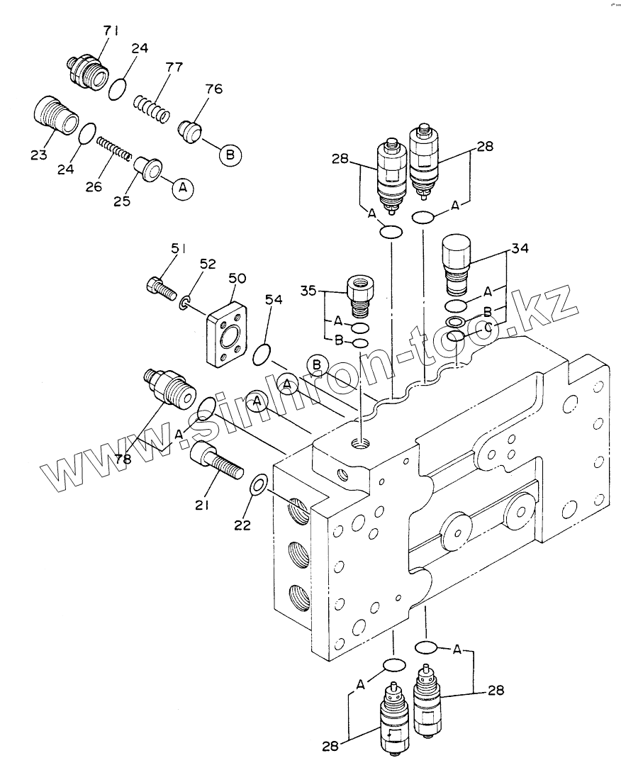 Каталог запасных частей к технике: Hitachi Компоненты EX-220. VALVE,CONTROL (3/4)