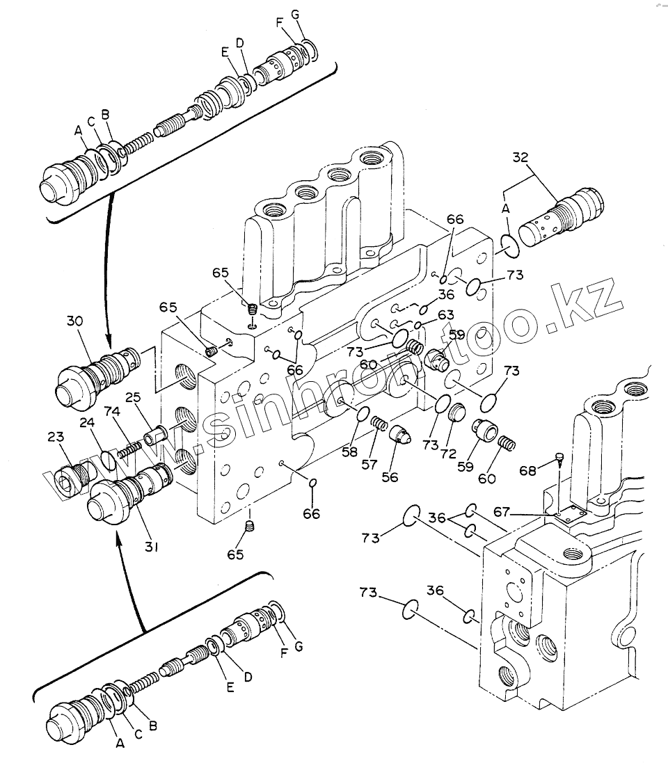 Каталог запасных частей к технике: Hitachi Компоненты EX-220. VALVE,CONTROL (4/4)
