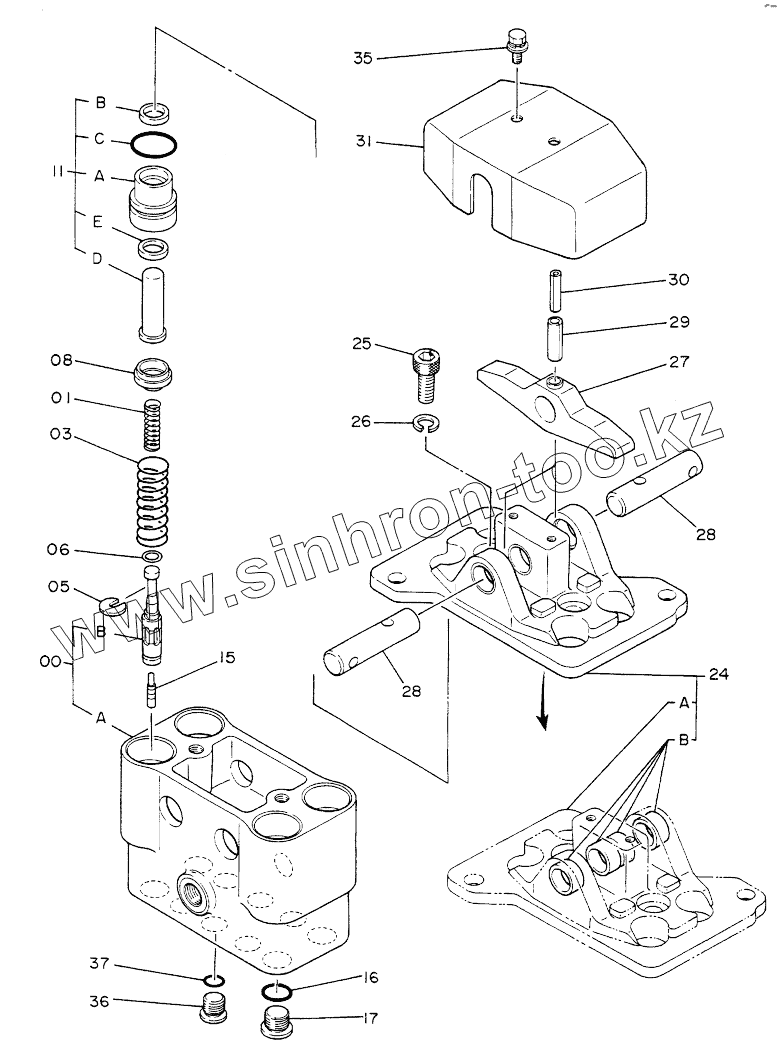 Каталог запасных частей к технике: Hitachi Компоненты EX-220. VALVE,PILOT
