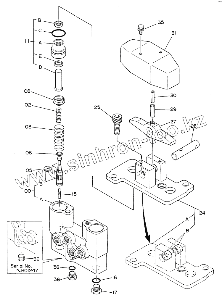 Каталог запасных частей к технике: Hitachi Компоненты EX-220. VALVE,PILOT