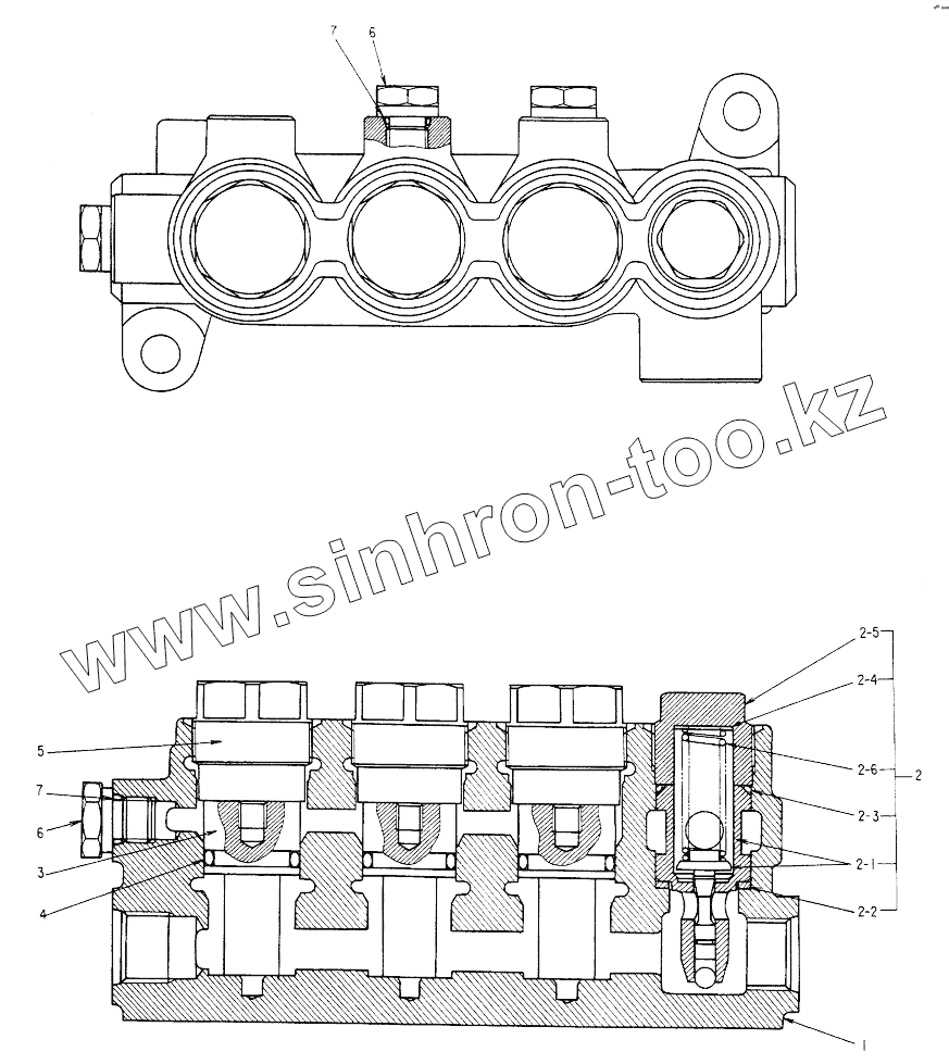 Каталог запасных частей к технике: Hitachi Компоненты EX-220. VALVE,RELIEF