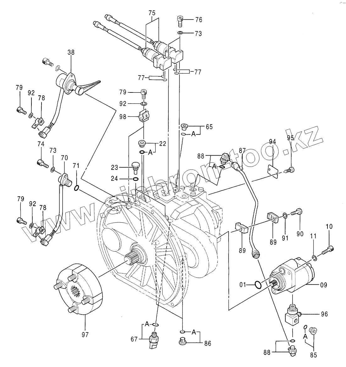 Каталог запасных частей к технике: Hitachi Компоненты EX-220-2. PUMP, DOUBLE (1/2) H01169-