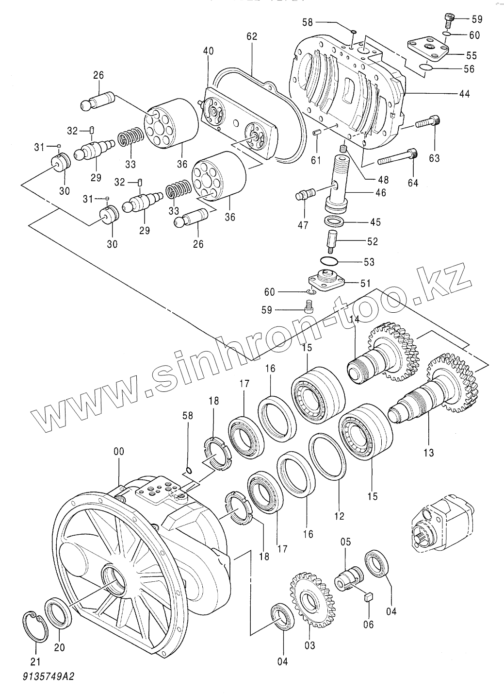 Каталог запасных частей к технике: Hitachi Компоненты EX-220-2. PUMP, DOUBLE (2/2) H01169-