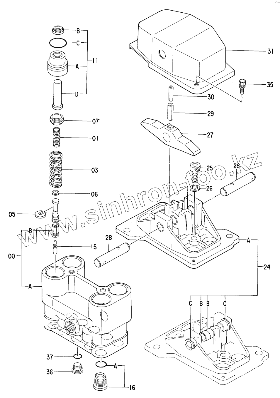 Каталог запасных частей к технике: Hitachi Компоненты EX-220-2. VALVE, PILOT