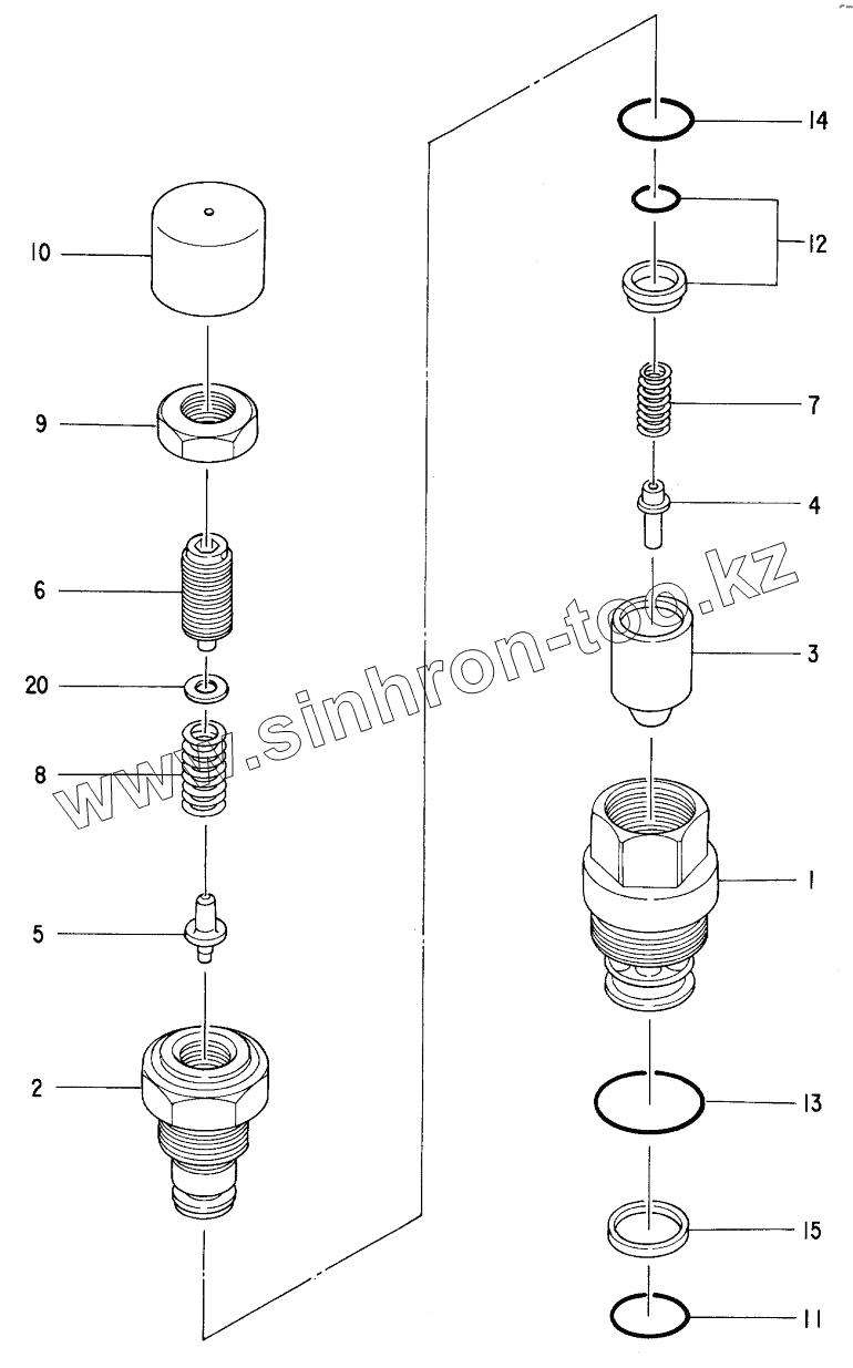 Каталог запасных частей к технике: Hitachi Компоненты EX-220-2. VALVE, RELIEF
