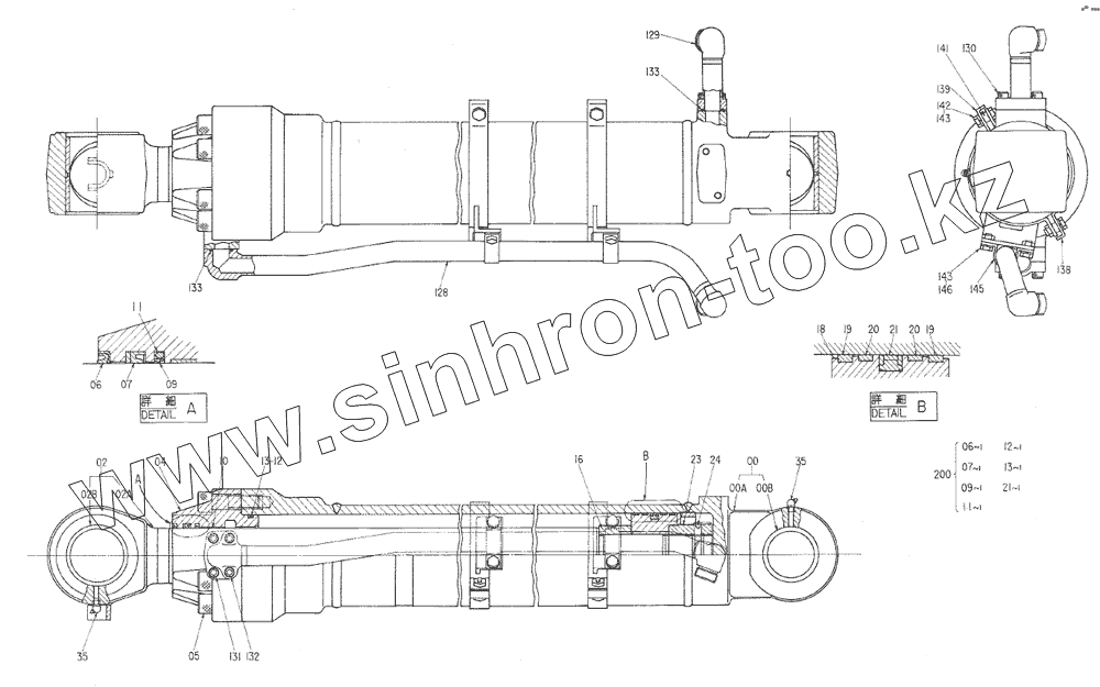Каталог запасных частей к технике: Hitachi Компоненты EX-270. CYL., BUCKET