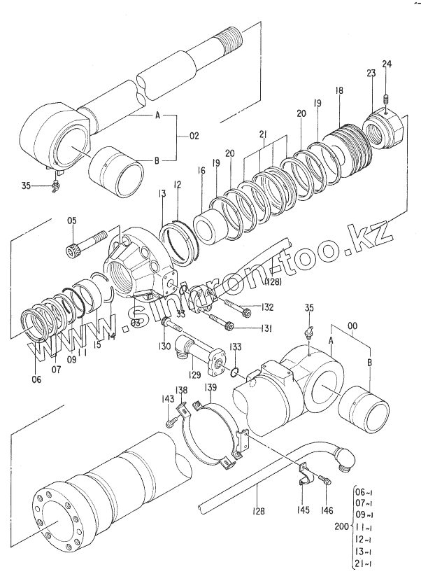 Каталог запасных частей к технике: Hitachi Компоненты EX-270. CYL., BUCKET