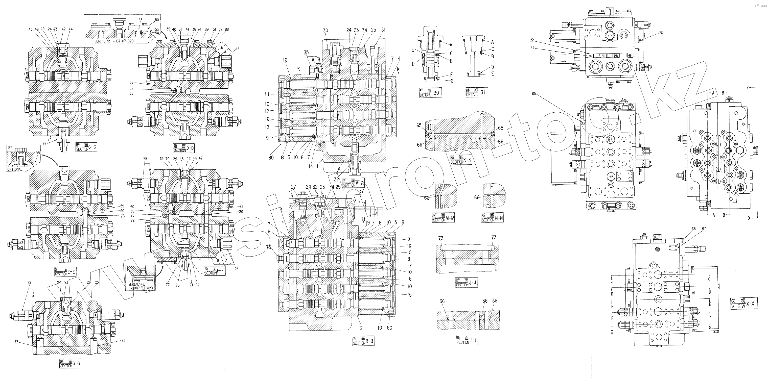 Каталог запасных частей к технике: Hitachi Компоненты EX-270. VALVE, CONTROL