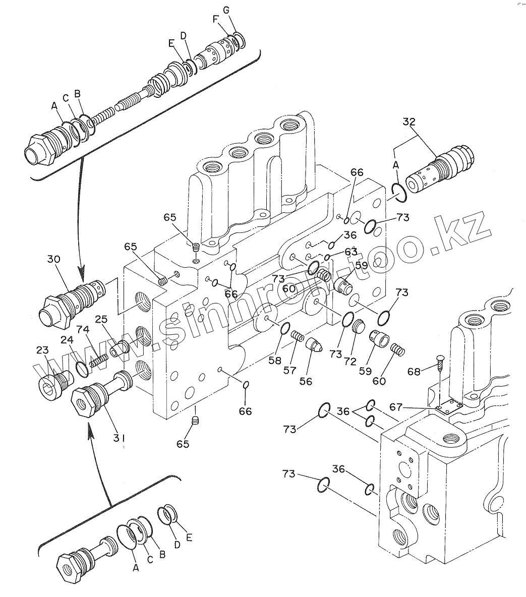 Каталог запасных частей к технике: Hitachi Компоненты EX-270. VALVE, CONTROL (4/4)
