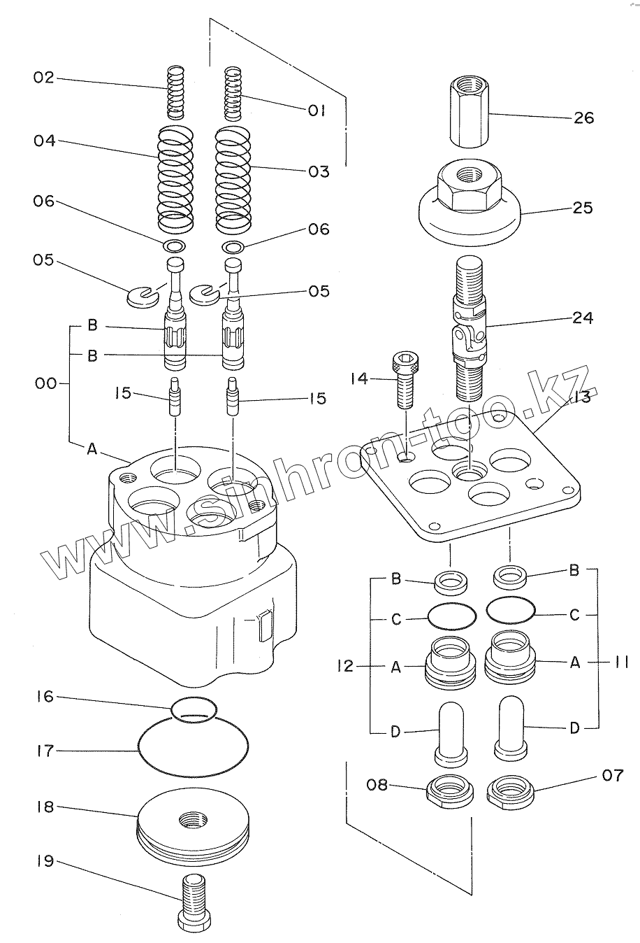 Каталог запасных частей к технике: Hitachi Компоненты EX-270. VALVE, PILOT