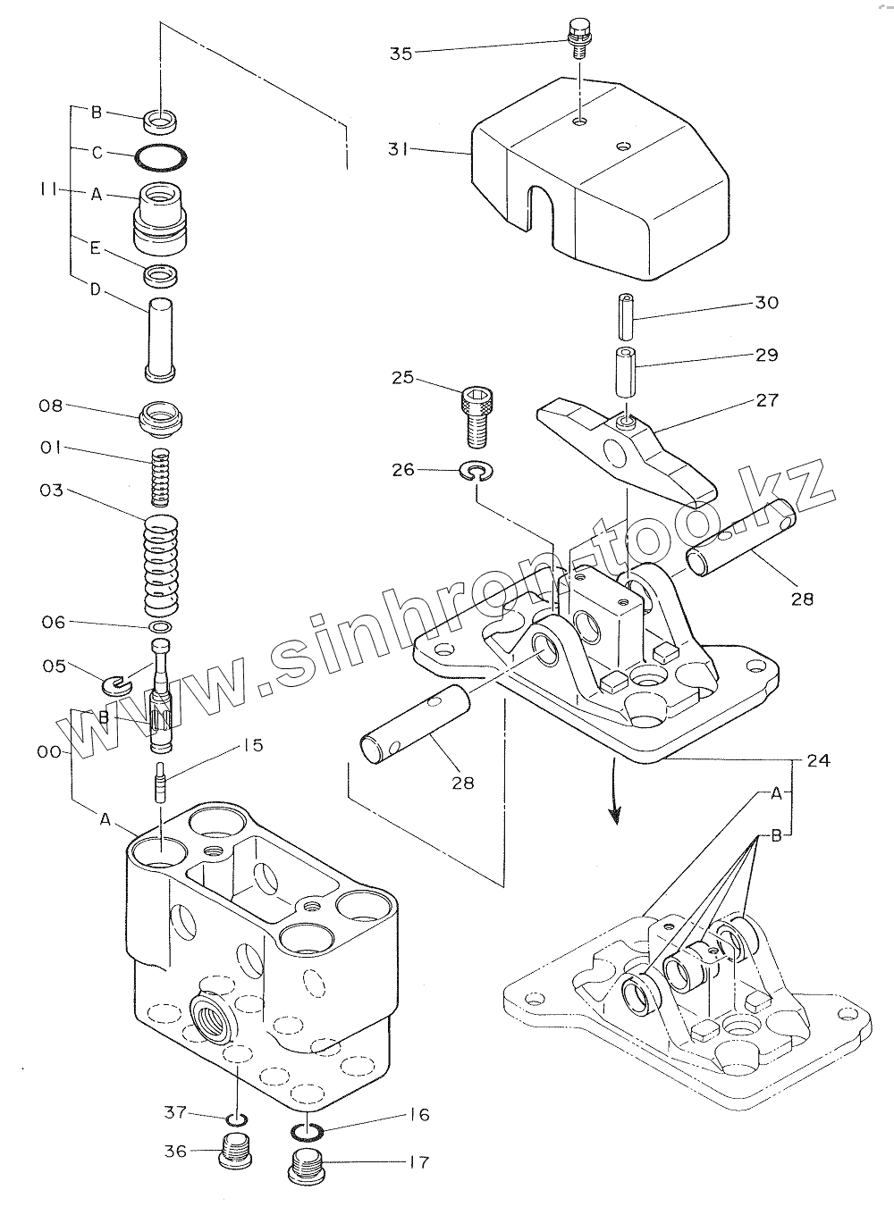 Каталог запасных частей к технике: Hitachi Компоненты EX-270. VALVE, PILOT