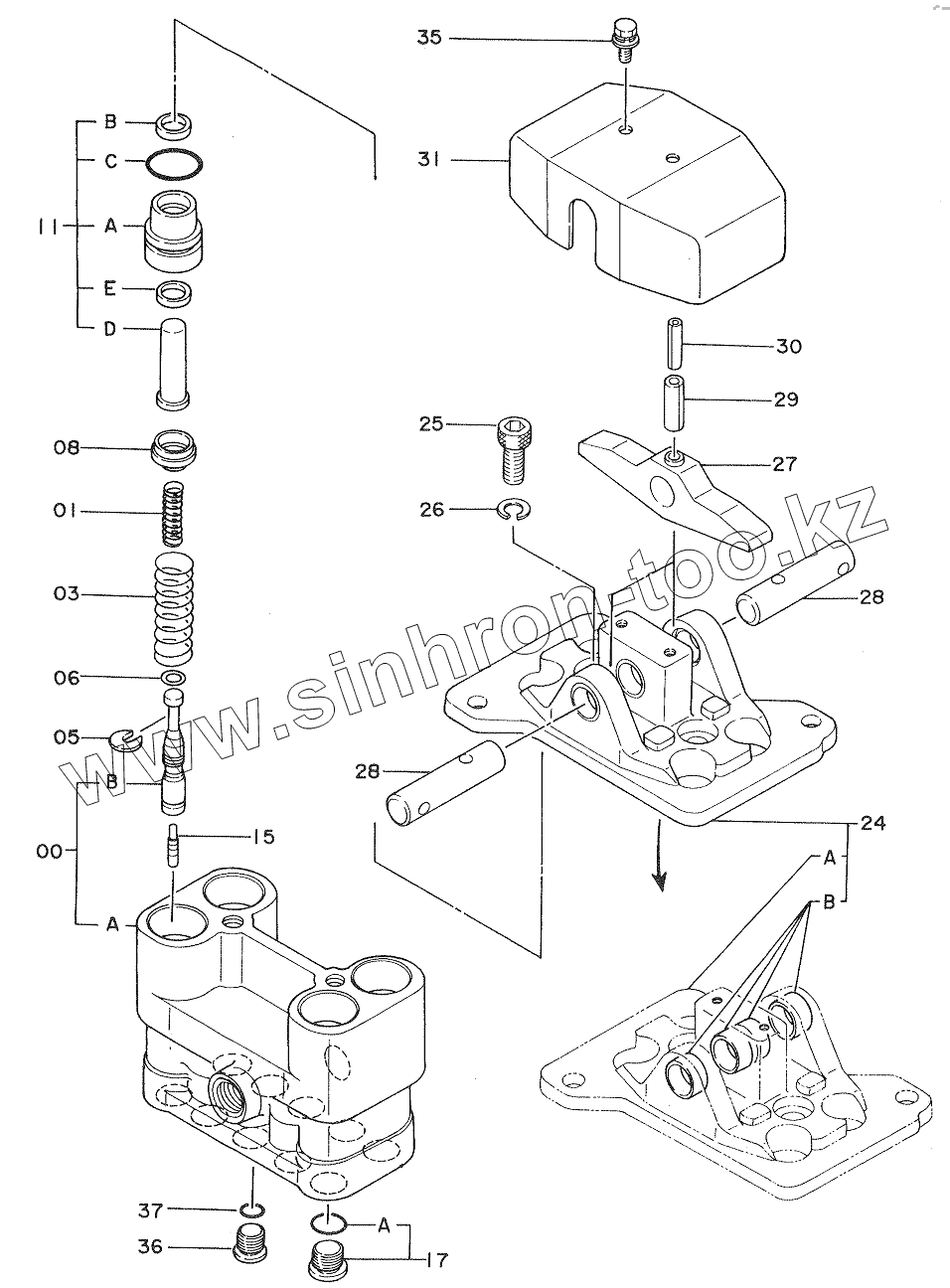 Каталог запасных частей к технике: Hitachi Компоненты EX-270. VALVE, PILOT