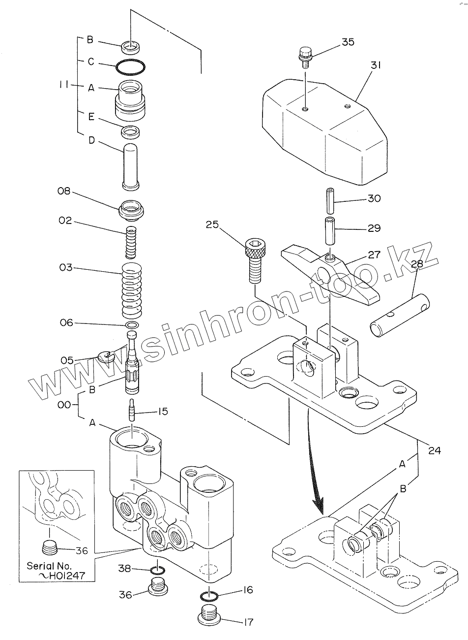 Каталог запасных частей к технике: Hitachi Компоненты EX-270. VALVE, PILOT