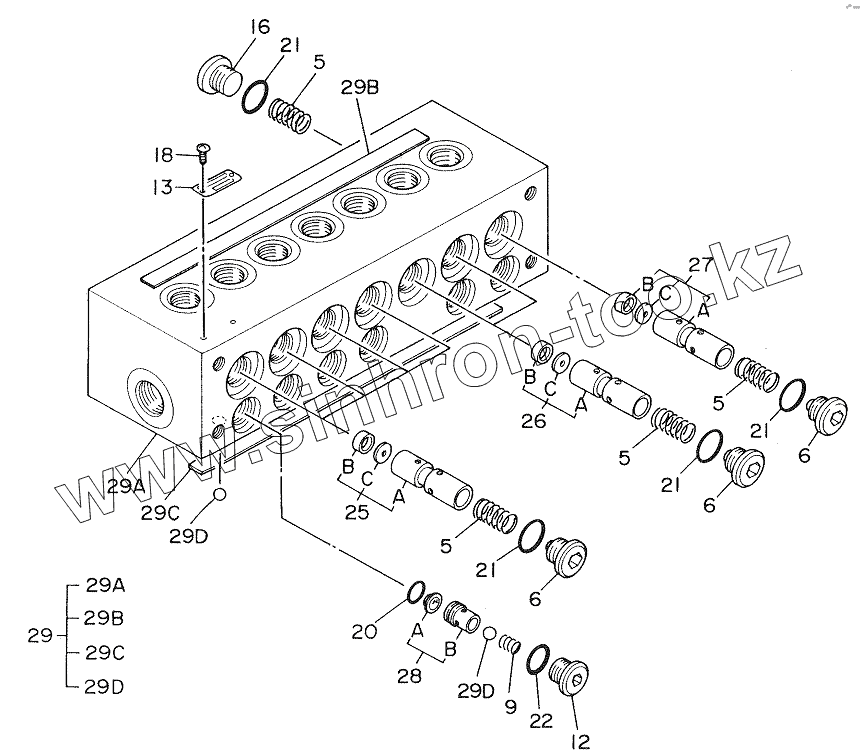 Каталог запасных частей к технике: Hitachi Компоненты EX-270. VALVE, SHOCKLESS