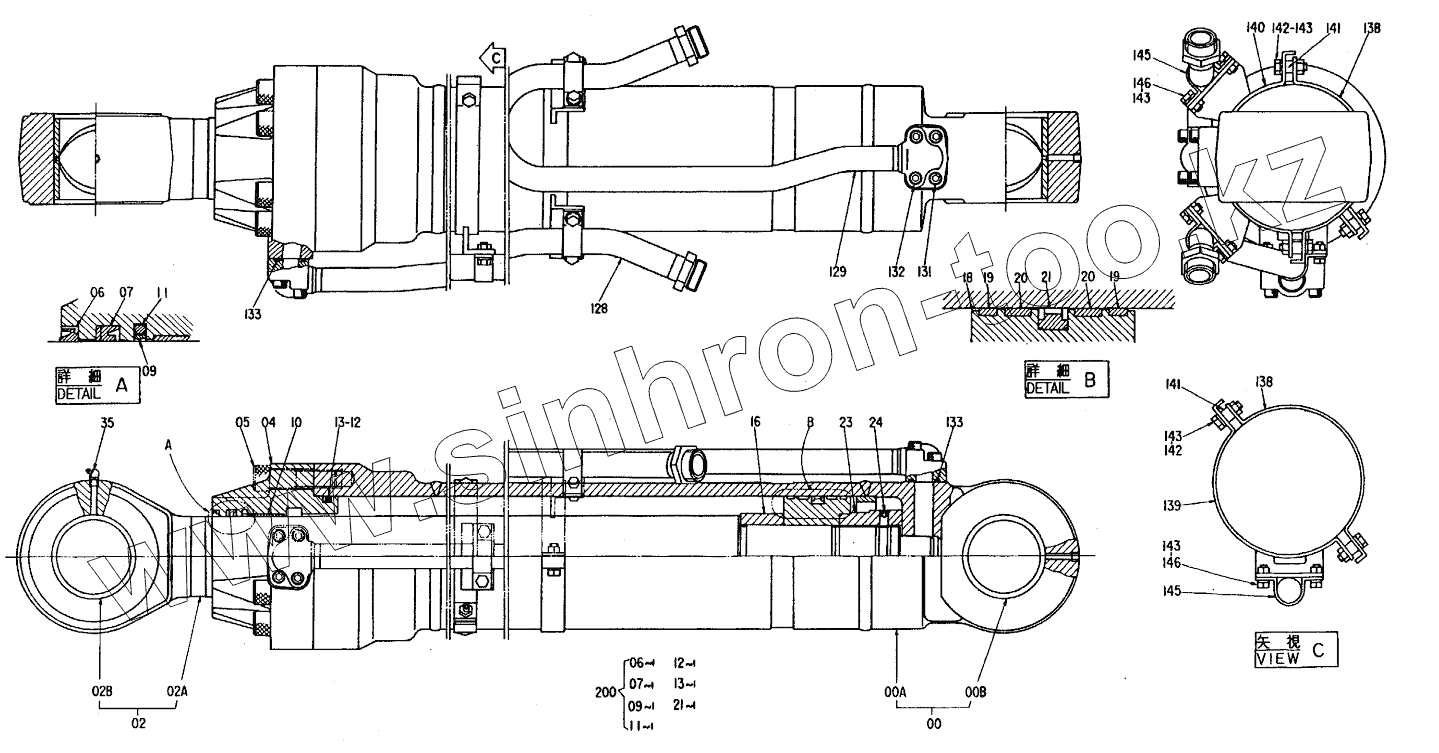Каталог запасных частей к технике: Hitachi Компоненты EX-300. CYL.,ARM