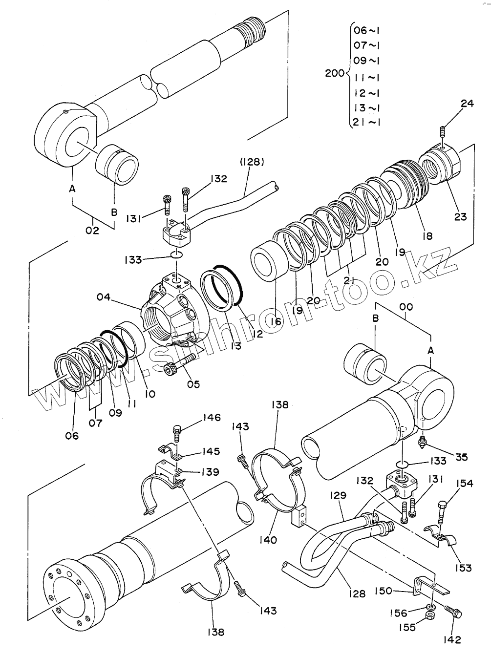 Каталог запасных частей к технике: Hitachi Компоненты EX-300. CYL.,BOOM (R)