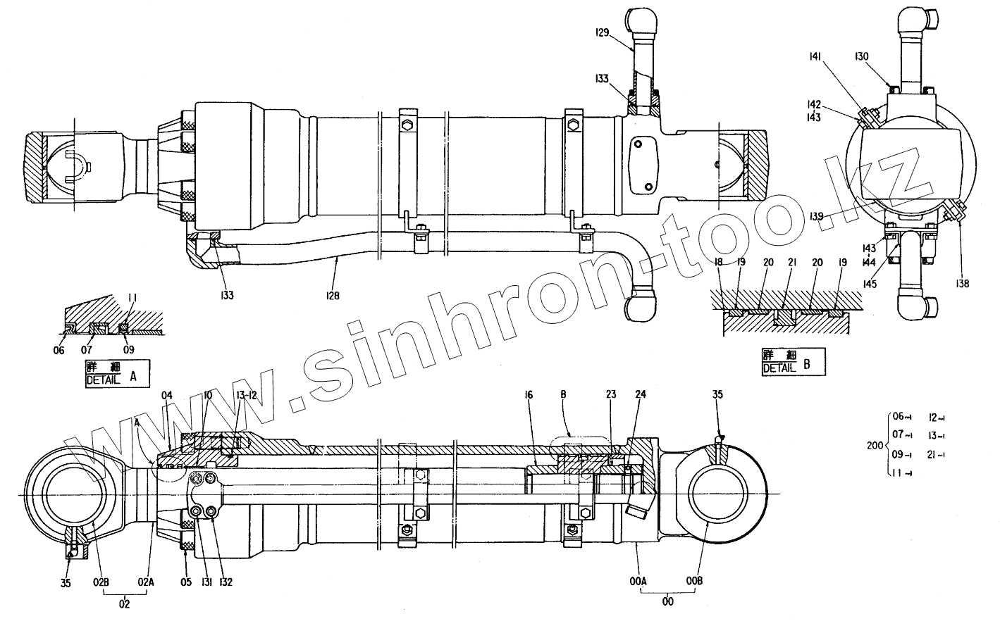 Каталог запасных частей к технике: Hitachi Компоненты EX-300. CYL.,BUCKET