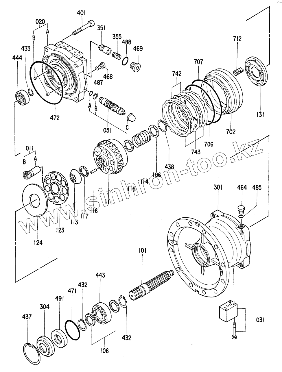 Каталог запасных частей к технике: Hitachi Компоненты EX-300. MOTOR,OIL (SWING)
