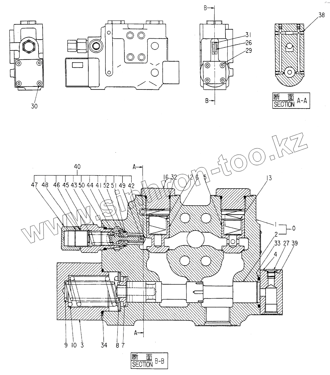 Каталог запасных частей к технике: Hitachi Компоненты EX-300. VALVE,HOSE RUPTURE