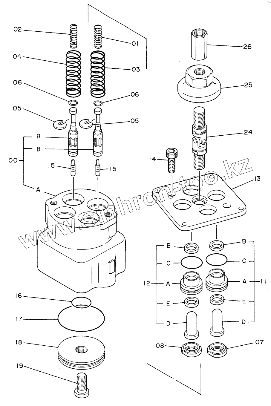 Каталог запасных частей к технике: Hitachi Компоненты EX-300. VALVE,PILOT