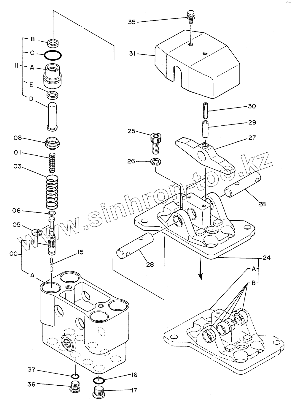 Каталог запасных частей к технике: Hitachi Компоненты EX-300. VALVE,PILOT