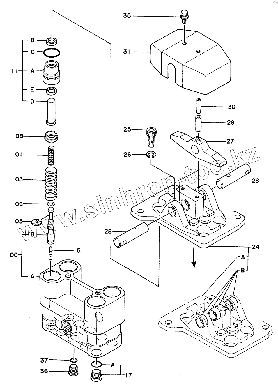 Каталог запасных частей к технике: Hitachi Компоненты EX-300. VALVE,PILOT