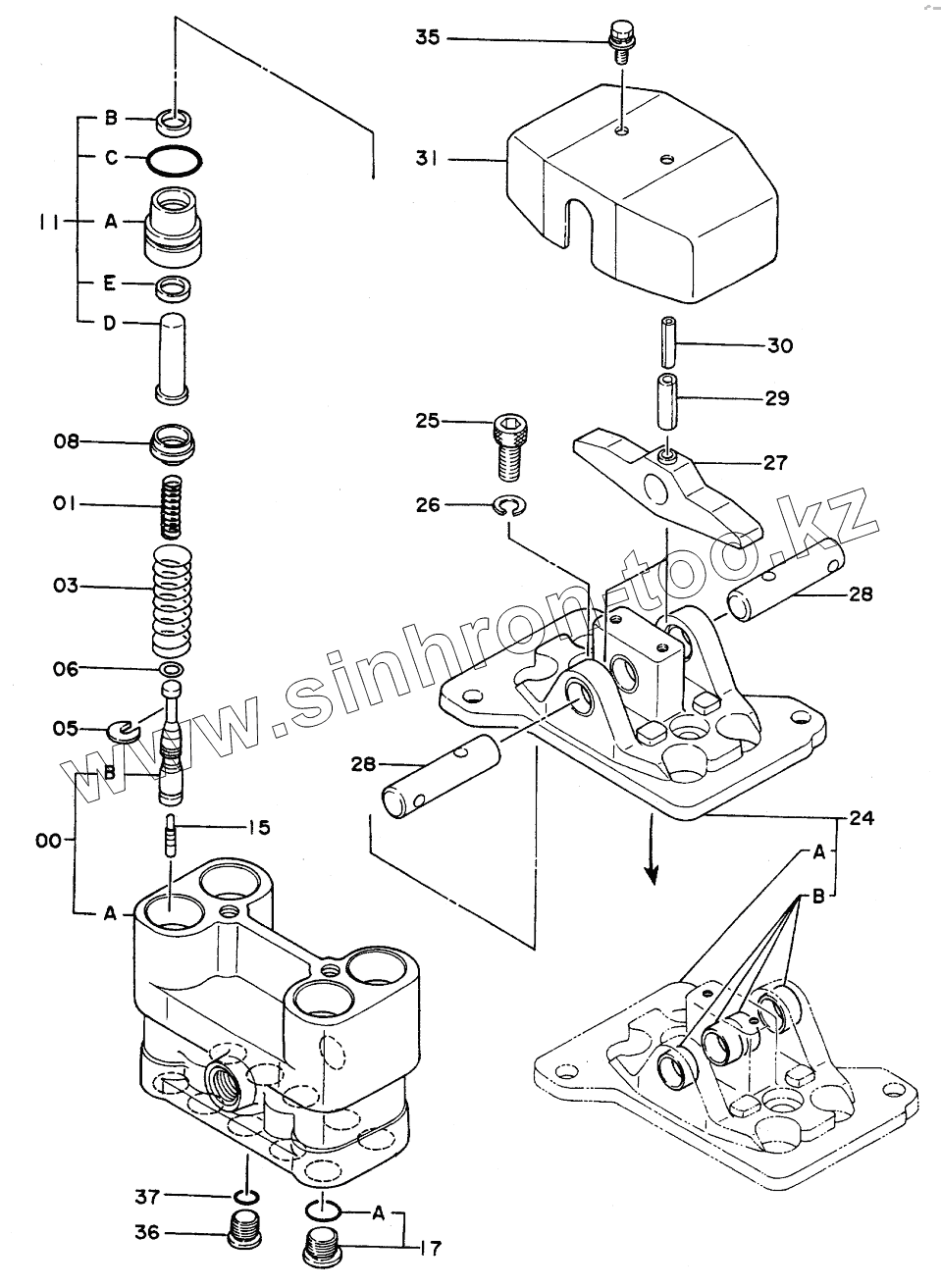 Каталог запасных частей к технике: Hitachi Компоненты EX-300. VALVE,PILOT