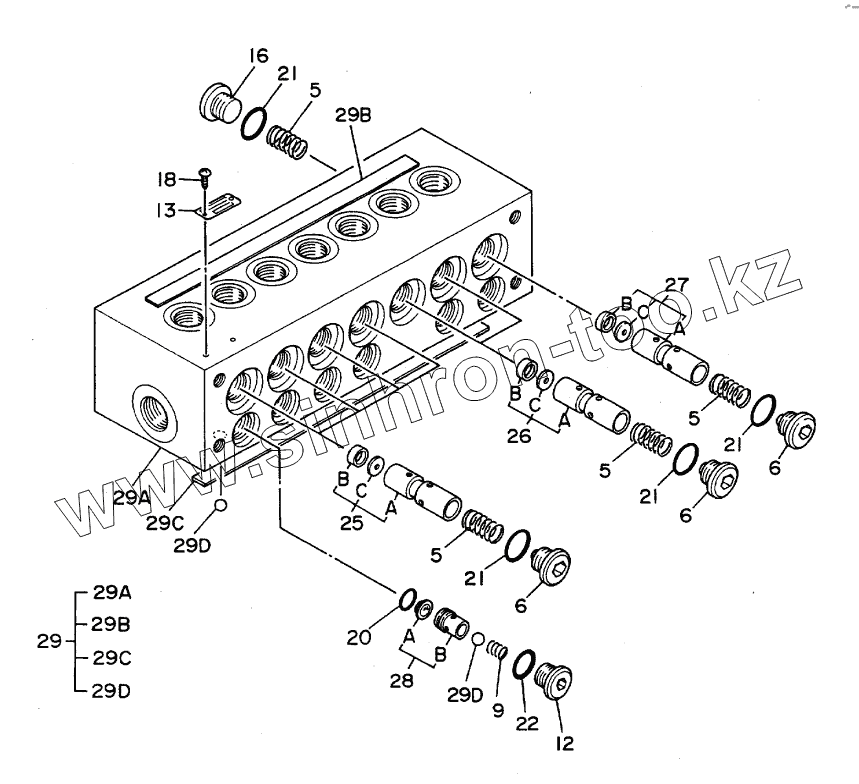 Каталог запасных частей к технике: Hitachi Компоненты EX-300. VALVE,SHOCKLESS