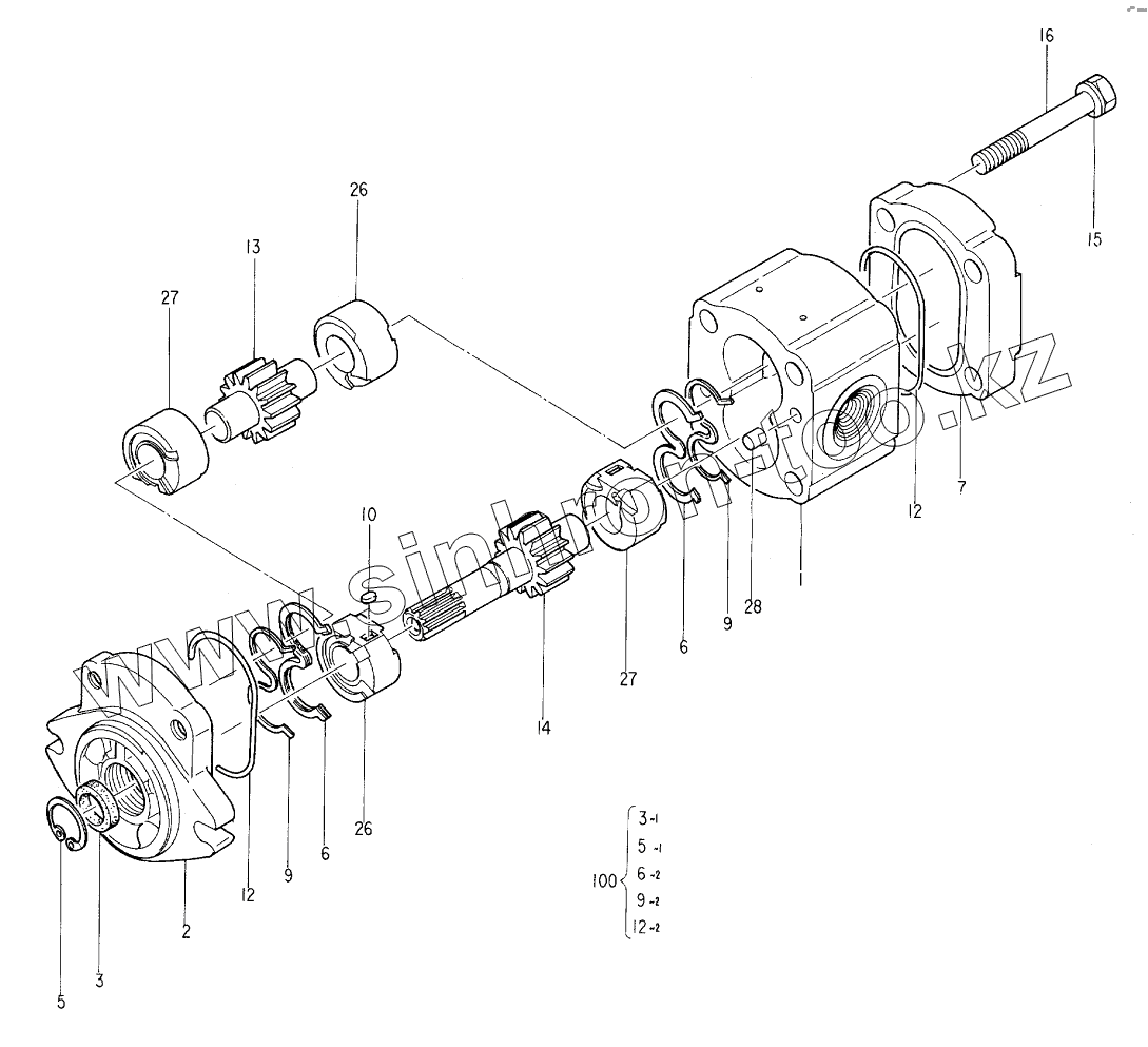Каталог запасных частей к технике: Hitachi Компоненты EX-300-2. GEAR PUMP