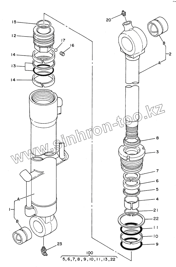 Каталог запасных частей к технике: Hitachi Компоненты EX-60. CYL., BUCKET