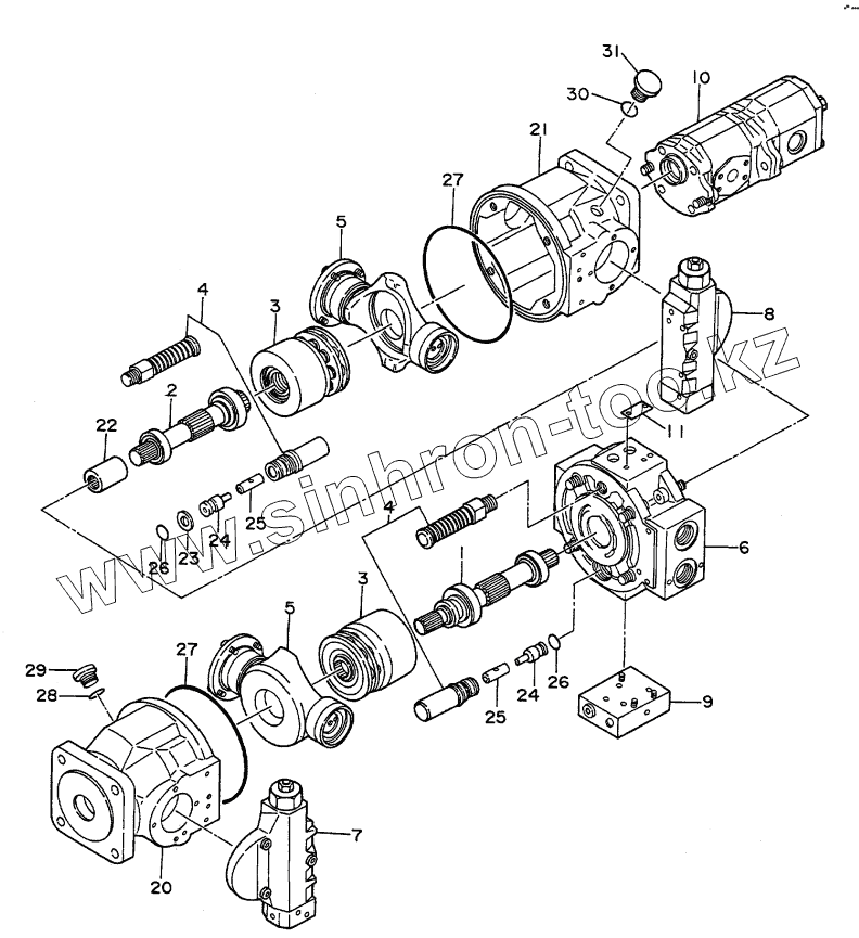 Каталог запасных частей к технике: Hitachi Компоненты EX-60. PUMP, PISTON (BLADE)
