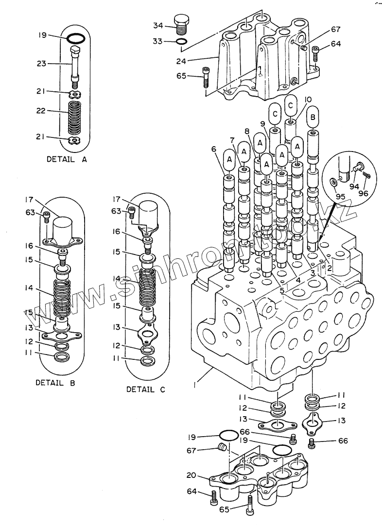 Каталог запасных частей к технике: Hitachi Компоненты EX-60. VALVE, CONTROL (1/3)