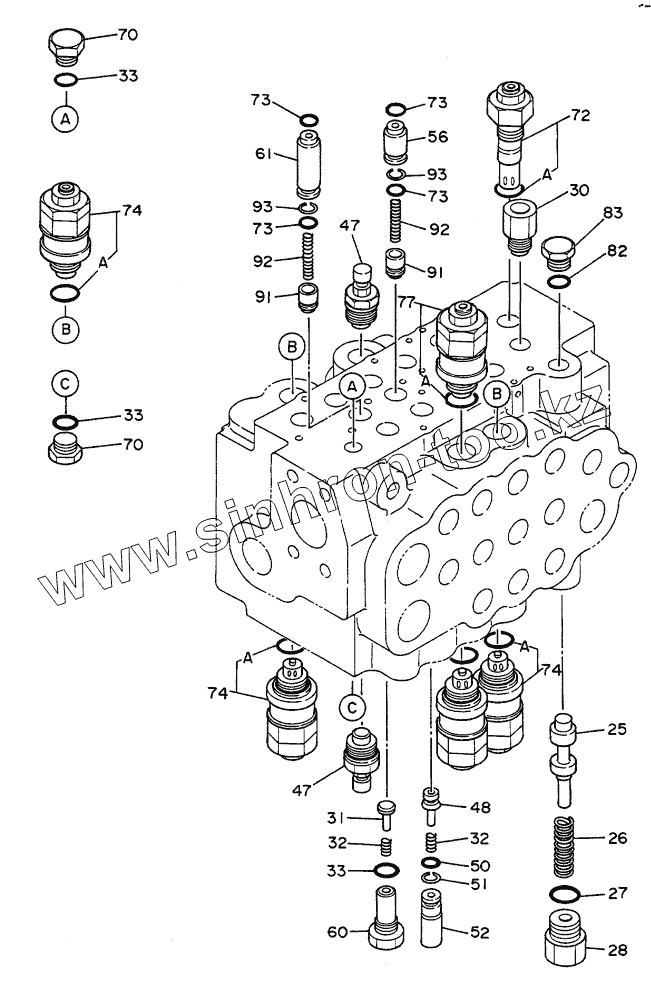 Каталог запасных частей к технике: Hitachi Компоненты EX-60. VALVE, CONTROL (3/3)