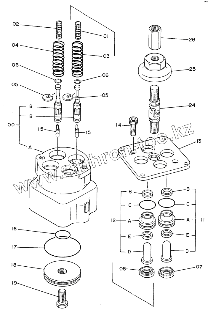 Каталог запасных частей к технике: Hitachi Компоненты EX-60. VALVE, PILOT