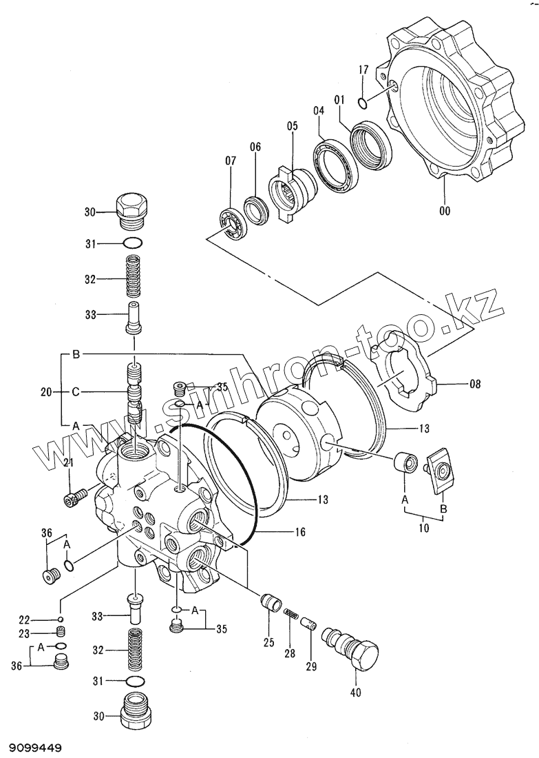 Каталог запасных частей к технике: Hitachi Компоненты EX-60-2. MOTOR OIL (TRAVEL) 9099449